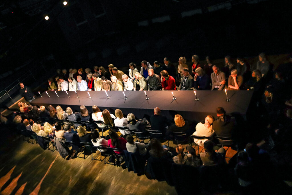 Spektaklio metu vyravo išskirtinė bendrystės ir artumo atmosfera. Emocinė kulminacija pasiekta sulaukus netikėto akcento – kvietimo paskanauti balta mišraine, klausantis Kastyčio Kerbedžio dainos. Šis simbolinis gestas subtiliai apjungė laidotuvių atsisveikinimo ir bendros žmogiškos šventės temas.
