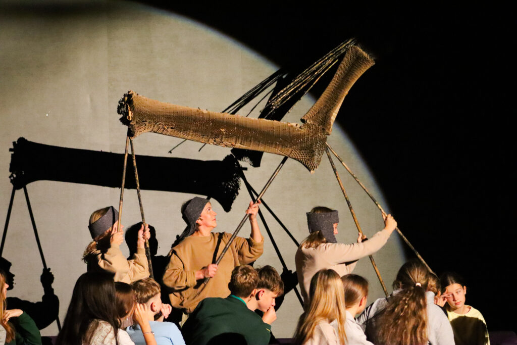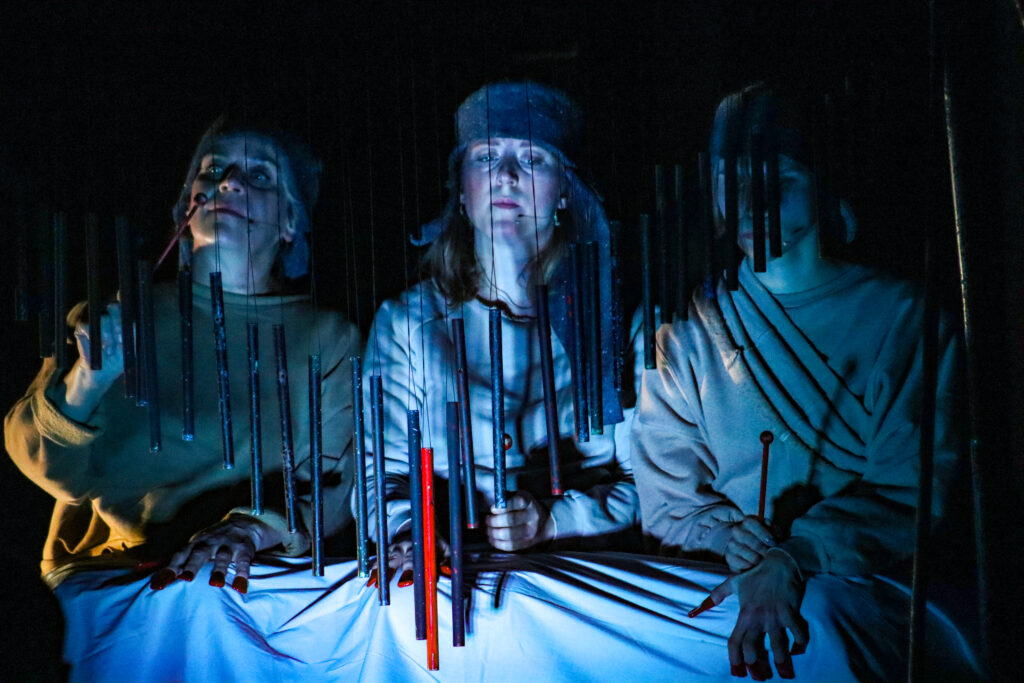 Kūrėjai pasitelkė netradicines teatro priemones – objektus, šešėlius ir gyvą garsą – taip sukurdami itin atmosferišką reginį, balansavusį tarp poezijos, ritualo ir šiuolaikinio meno.
