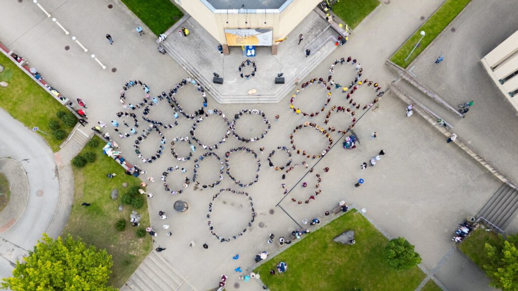 Mažeikiuose prie akcijos jungėsi Kalnėnų ir „Ventos“ progimnazijų, Kazimiero Jagmino ir „Žiburėlio“ pradinių mokyklų bendruomenės. Visos mokyklos buvo pasiruošusios – mokiniai jau mokėjo šokius ir keisdamiesi, juos demonstravo visiems susirinkusiems.